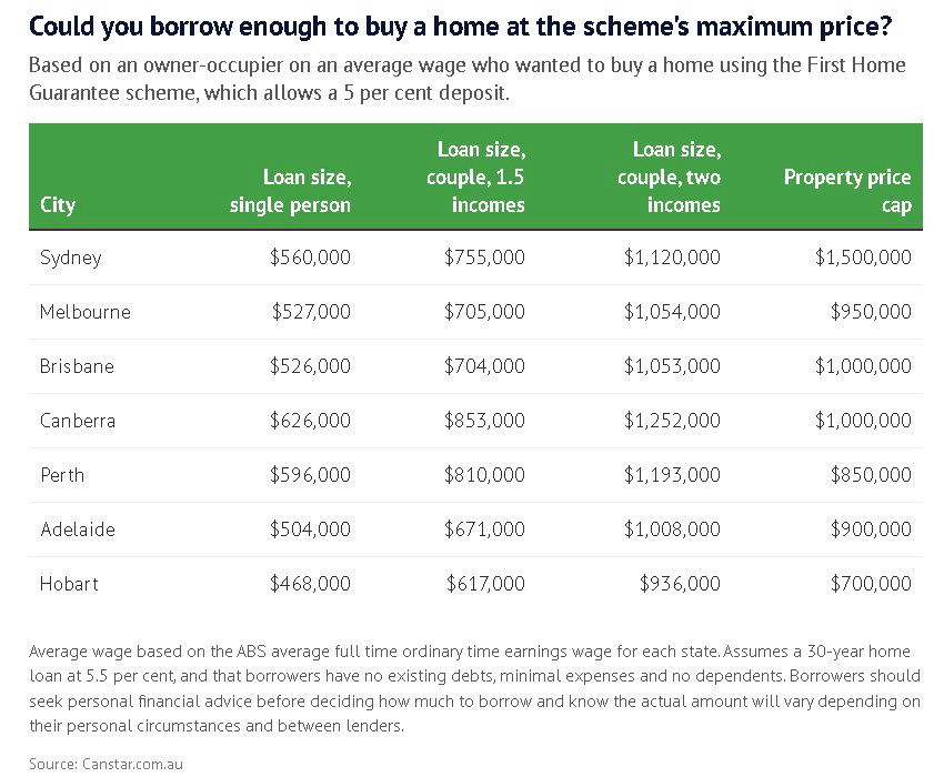 A full-time worker on an average wage would not be able to borrow enough money to take full advantage of the federal government’s first home buyer help, instead falling hundreds of thousands of dollars short.