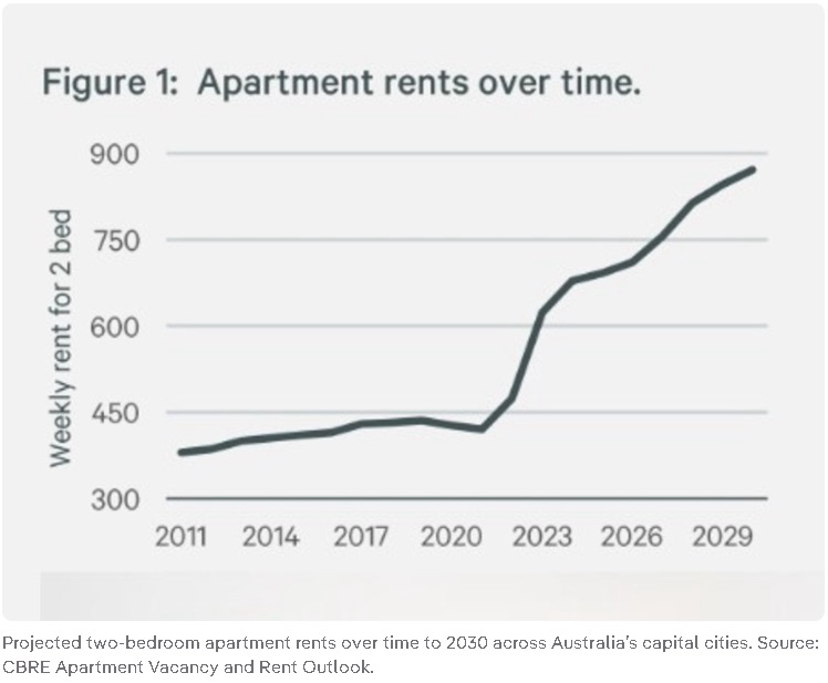 Median apartment rents are likely to grow by 24% between 2025 and 2030, across Australian capital cities, according to the latest report by International Property Consultancy, CBRE. By 2030, 92% of 2-bed apartments are forecast to have rents exceeding $700/week (33% exceeding $1000/week). CBRE expect that capital city vacancy rates will fall further to 1.1%...