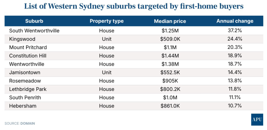 Intense competition among first-home buyers targeting once affordable suburbs in Sydney’s West has turbo-charged demand, resulting in prices surging by up to 37% in some suburbs in just a year.