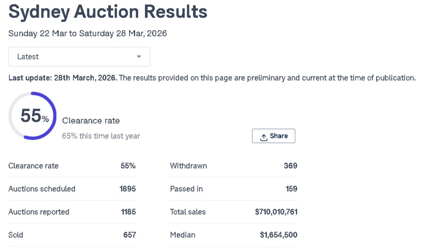 Sydney Auction Results Sunday 22 Mar to Saturday 28 Mar, 2026